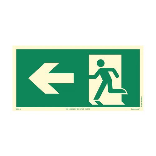 | Tavaranimike | Merkki hätäpoistumistie ylös vasemmalle, Tarra: ei, Taipumaton: kyllä, Kilpi, muoto: Quadrant |