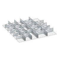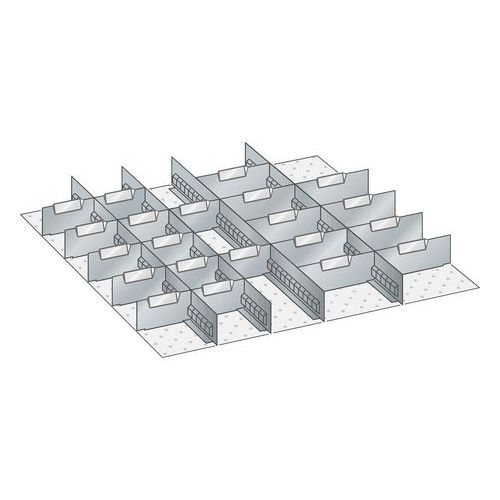 - 42-315 / Metallinen laatikonsisustus 124 työkalukaappiin 36x36E, laatikon korkeus: 75 mm: 4 x Urallinen jakoseinä 36U, 9 x Jakaja 9U, 12 x Jakaja 6U.