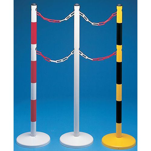 Metallitolppa liikennevirtojen ohjaukseen ja rajaamiseen. Leveä jalusta takaa erinomaisen vakauden. Suunniteltu ammattikäyttöön.