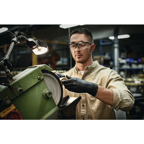 Mustat puuterittomat lateksikäsineet suojaavat kemikaaleilta ja nesteiltä. Täysin liimattu, vaahtoamaton koostumus takaa tukevan otteen märkiä esineitä käsiteltäessä. Vähentynyt ihoärsytyksen tai allergian riski. Ei-vaahdotettu muotoilu helpottaa esineiden käsittelyä kosteissa ympäristöissä. Täysin kuvioitu pinta tarjoaa varman otteen. Hyväksytty elintarvikekäyttöön: Sopii myös moniin elintarviketeollisuuden sovelluksiin.