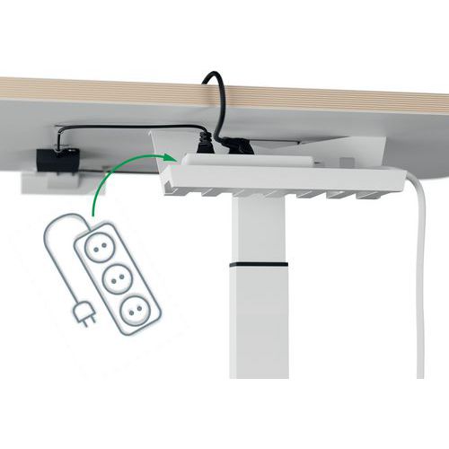 Toimitukseen sisältyy johdonhallintaratkaisu pistorasioille pöydän alla ja neljä läpinäkyvää, itseliimautuvaa pidikettä kaapelihäiriöiden vähentämiseksi.