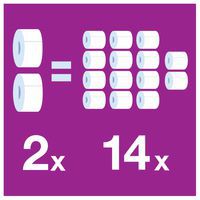 Taloudellinen pituutensa ansiosta. Pehmeä ja paksuudeltaan kaksinkertainen. Laadukas, pehmeä kerros. Voidaan täyttää ja huoltaa erittäin nopeasti. Tyylikäs wc-paperi, jossa sininen laakerinlehti-kohokuviointi. Kartonkipakkaus parantaa suojaa ja hygieniaa. Kahteen järjestelmään: T1 Maxi- ja T2 Mini-rullakoolle.