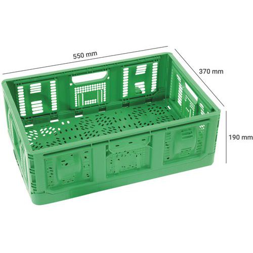 | Tavaranimike | Taitettava muovilaatikko 550 mm/34 litraa, Tilavuus: 34 L, Kokonaiskorkeus: 190 mm, Kokonaisleveys: 370 mm |