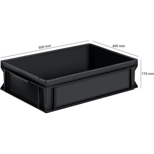 Muovilaatikko Europe ESD, Tilavuus: 30 L, Pinottava: kyllä, Kokonaiskorkeus: 170 mm, Kokonaisleveys: 400 mm