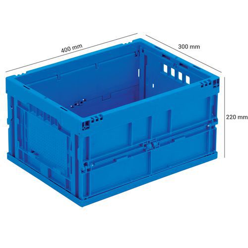 Muovilaatikko kokoontaittuva sininen, Tilavuus: 20 L, Kokonaiskorkeus: 220 mm, Kokonaisleveys: 300 mm