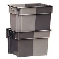 60 %-sesti pinottavat tilan säästämiseksi. Leveät ergonomiset kahvat helpottavat käsittelyä. Tasainen pohja tekee siitä sopivan kaikentyyppisiin kuljetushihnoihin. Kaksivärinen rakenne tekee siitä helposti pinottavan.