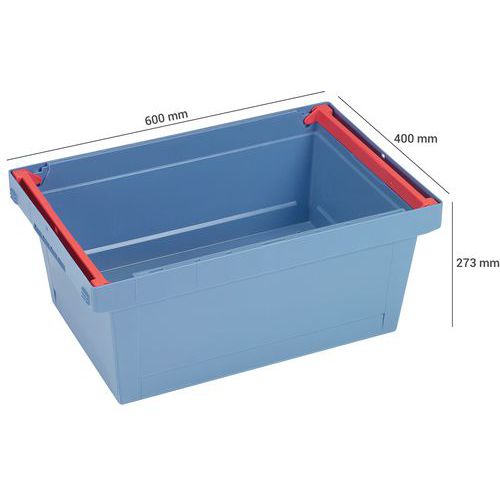 Muovilaatikko pinott kädensija, Tilavuus: 47 L, Kokonaiskorkeus: 273 mm, Kokonaisleveys: 400 mm