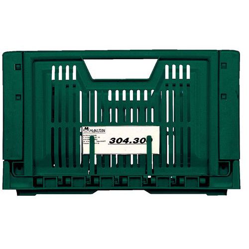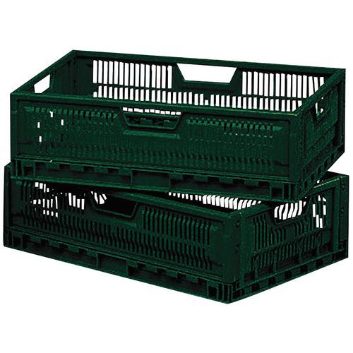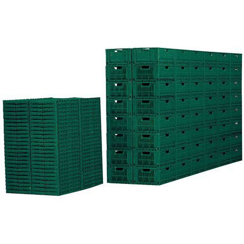 - Kokoontaittuva, pinottava ja lavoihin sopiva eurooppalaisen standardin mukainen laatikko.