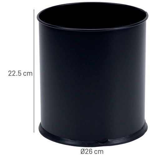Musta metallinen roskakori, Tilavuus: 8 L, Aukko: Ilman kansi, Jätetynnyri