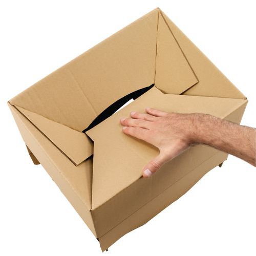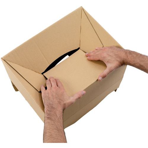 Muutto-laatikko suljettavalla kannella, turvalliseen sisällön kuljetukseen. Vakaa kuljetus lavalla. Kaksinkertainen paksuus pohjassa. Nopea sulkeminen. Laatikko sivukahvoilla. Puoliautomaattiseen sulkemiseen! Materiaali 67 % keräyspaperia ja 33 % metsätalouden jäännöstuotteista valmistettua voimapaperia.