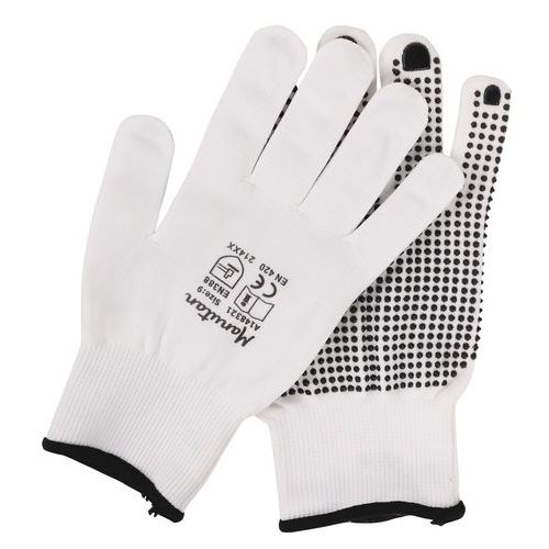 Näppyläpinnoitetut käsineet, Pinnoite: PVC, Tekstiilimateriaali: Puuvilla ja polyesteri