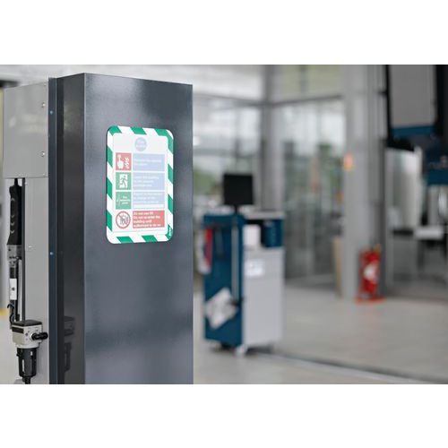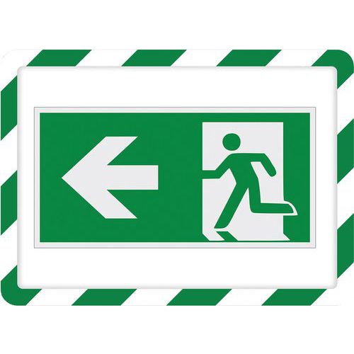 Näytön tasku kehyksellä, Materiaali: PVC, Kilpi tyyppi: Hätäpoistumistie, Väri: Vihreä/valkoinen