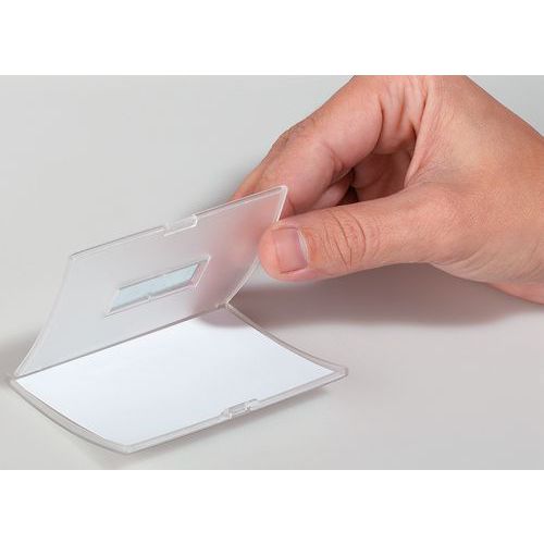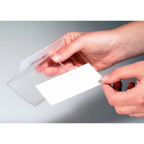 | Tavaranimike | Nimikilpi Click Fold Combi 40 x 75 mm 25 kpl, Väri: Läpinäkyvä, Kiinnitystyyppi: Pihdit, Pituus: 75 mm |