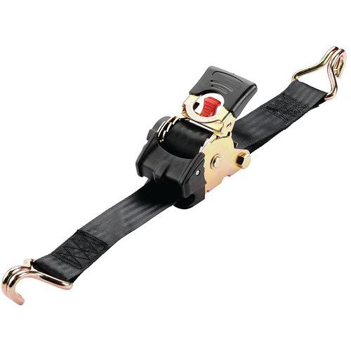 - Erittäin nopea: hihna kelautuu automaattisesti sisään, kun punaista kelauspainiketta painetaan.