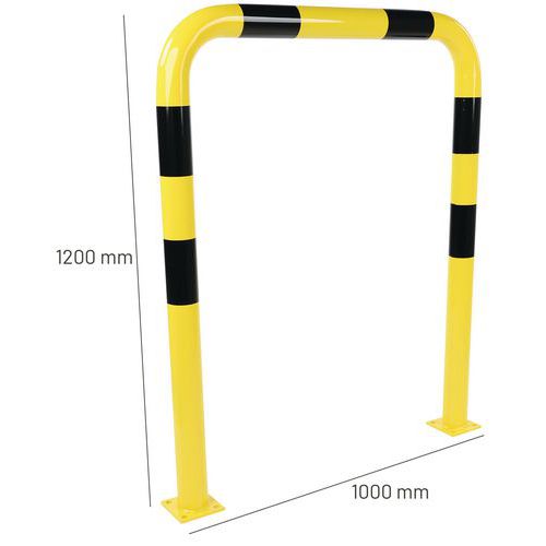Suojakaari varaston ajoneuvojen ja koneiden iskuja vastaan. Voidaan käyttää myös jalankulkijoiden suojaamiseen estämällä liikkuvan kaluston saatavuus. Musta-keltainen väritys ilmaisee vaaran näkyvästi. Vankka teräsrakenne. Asennus valettavaan peltiin. Sopii koneiden suojaukseen tai alueiden rajaamiseen jalankulkjoille.