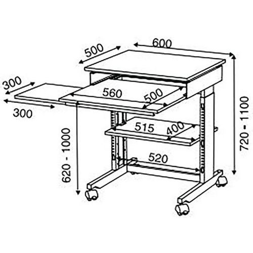 Lisäksi hylly tulostimelle, keskusyksikölle, mapeille yms.