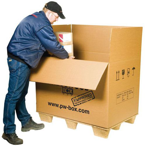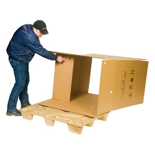 Sivuaukko helpottaa lastausta. Erittäin turvallinen, ilman ruuveja ja nauloja valmistettu kuormalava. Helppo ja nopea kokoaminen ilman hihnoja. Kevyt ja kierrätettävä laatikko kuormalavalla. Suojaa tuotteet erinomaisesti. Sisältää: 1 kuormalava, 1 pahvilaatikko ja 4 tulppaa. Pinottavat kuormalavat säästävät tilaa.