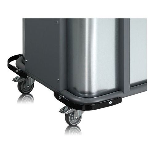 Varustettu neljällä pyörällä – kahdella kiinteällä ja kahdella kääntyvällä, jarrullisella 100 mm pyörällä – vakaaseen ja turvalliseen liikuteltavuuteen.