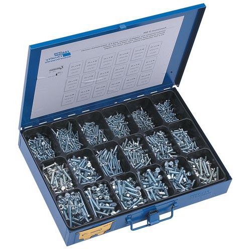 | Tavaranimike | Pakkaus pyöreäpäisiä uraruuveja ja kuusiomuttereita – 3 060 kpl, Materiaali: Teräs, Lkm, osia: 3060 |