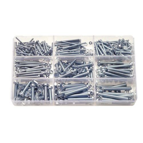 | Tavaranimike | Pakkaus pyöreäpäisiä uraruuveja ja kuusiomuttereita – 550 kpl, Materiaali: PVC, Lkm, osia: 550 |