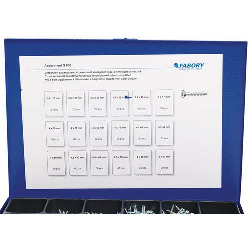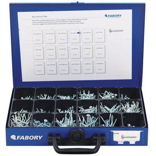 | Tavaranimike | Pakkaus uppokantaisia Pozidriv®-ristipääruuveja, lastulevylle – kappalemäärä: 1 225, Materiaali: Teräs |