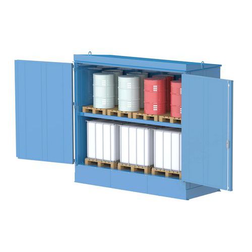 Paloeristetty kemikaalikaappi El 60 ulkokäyttöön, Kokonaiskorkeus: 3480 mm, Kokonaisleveys: 3880 mm