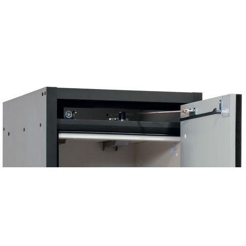Paloturvakaappi Q-CLASSIC-30. Hyväksytty syttyvien vaarallisten aineiden varastointiin työtiloissa. Toiminta - rakenne. Vankka rakenne ja pitkäikäisyys: kolminkertaisesti saranoitu ovi, kaapin runko valmistettu melamiinihartsista ja tulenkestävistä erikoislevyistä, turvaelementit kootaan varastolokeron ulkopuolella, mikä lisää suojaa syöpymiseltä, ovet metalliedustalla sekä naarmuuntumis- ja iskuvarmalla pinnalla, helppo puhdistaa. Helppo ja mukava käsitellä: ovi pysähtyy mihin tahansa asentoonn, sulkeutuvat itsestään tulipalon sattuessa. Ei valtuuttamatonta käyttöä: ovi lukittavissa profiilisylinterilukolla (integrointi olemassa olevaan lukitusjärjestelmään mahdollista). Helppo kuljetus: integroitu kuljetusjalusta ja irrotettava, valinnainen suojus tai säädettävä tuki jalustan suojuksella. Tuuletus: integroidut ilmaputket, valmiit liitettäväksi (DN 75) tekniseen ilmanpoistojärjestelmään.