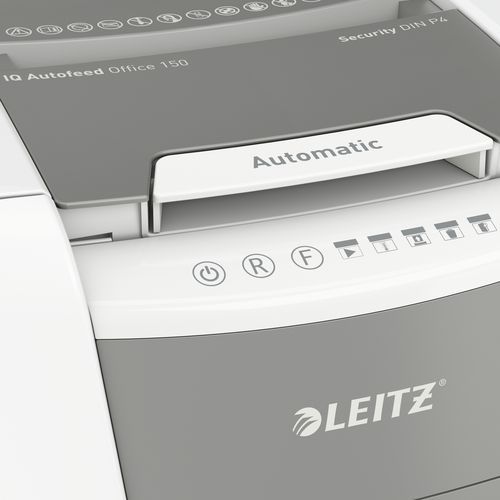 Leitz IQ Autofeed Office on täysin automaattinen paperintuhooja, joka on suunniteltu tehokkaaseen ja turvalliseen asiakirjojen käsittelyyn toimistoissa.