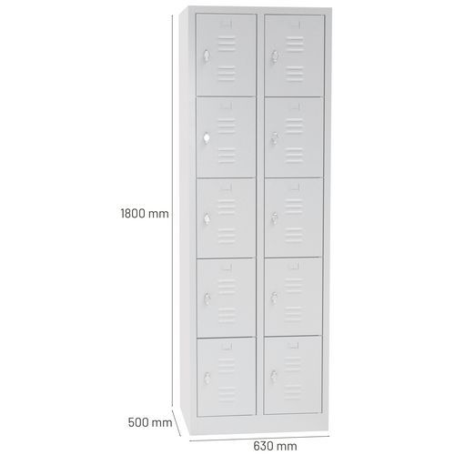 Uni-sokkelisarja on joukko pieniä vaatekaappeja/pienlokeroita, joissa voit itse määrittää, kuinka monta lokeroa tarvitset, 2-15 per kaappi. Kaapit on varustettu ovilla, joissa on näkymättömät saranat, äänieristetyynyt sekä ilmanvaihto sekä ylä- että alaosassa ovien etupuolella, jotta ilma kaapeissa pysyy raikkaana. Täydellinen kaikenlaisiin ympäristöihin, joissa tarvitset säilytystilaa vaatteille, laukuille ja muille tavaroille. Pienlokero Uni on reiät kaappien takana seinään kiinnittämistä varten - täydellinen niille, jotka haluavat vakaan ja turvallisen asennuksen. Kaapit toimitetaan koottuina ja ilman lukkoa - valitse sylinterilukko kahdella avaimella tai ripalukon salpa sekä ripaluko. Takuu (vuosia) : 10 vuotta Levy, paksuus : 7/10e