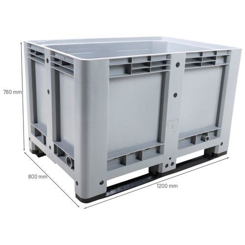 Muovilaatikko, jossa on kiinteät sivuseinät ja pohja. Suunniteltu täysin pakkasenkestäväksi. Kantavuus: Enintään 3 500 kg pinottuna. Lavalaatikko, joka takaa erinomaisen vakauden.