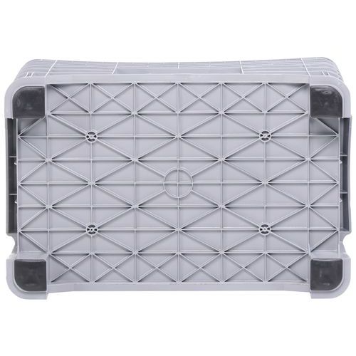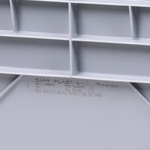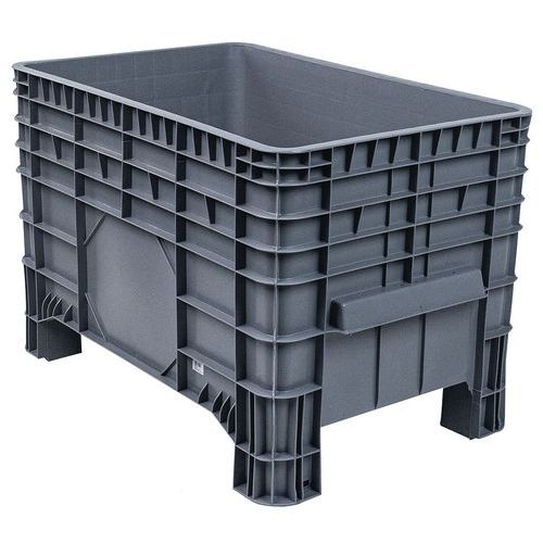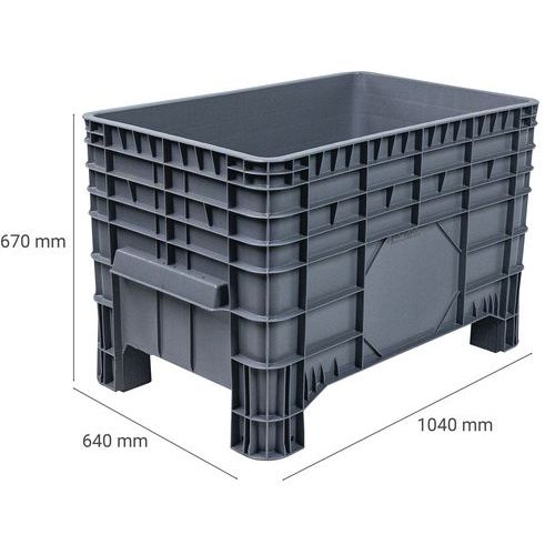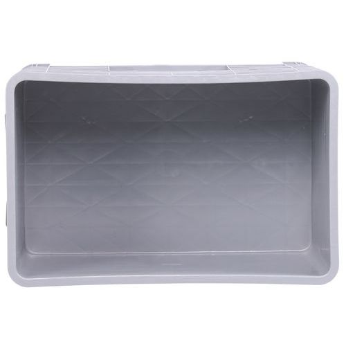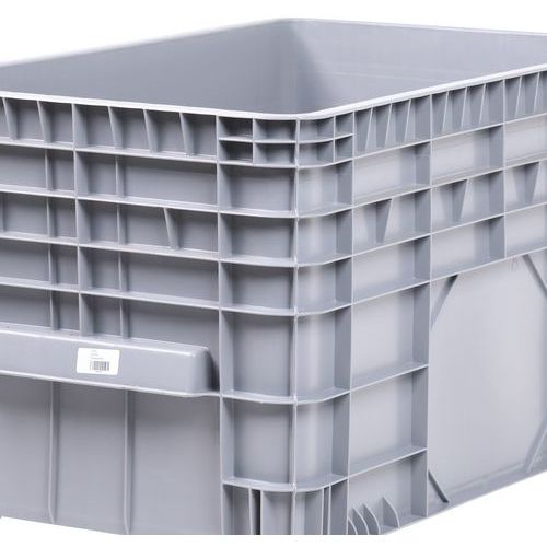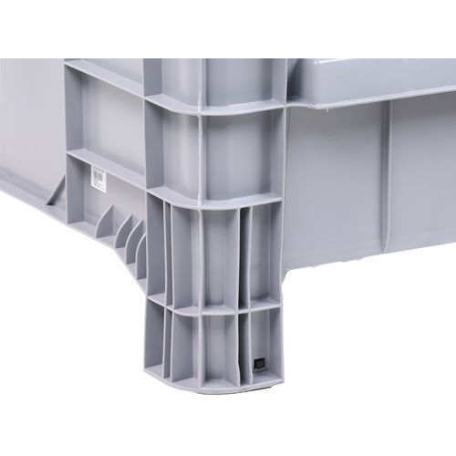 Muovi kestää erittäin hyvin kemikaaleja ja iskuja. Kiinteät sivut ja pohja sopivat täydellisesti nesteiden säilyttämiseen. Pinottava malli, johon on saatavilla jalat tai kansi. Erittäin tukeva laatikko, jossa on neljä kiinteää jalkaa.