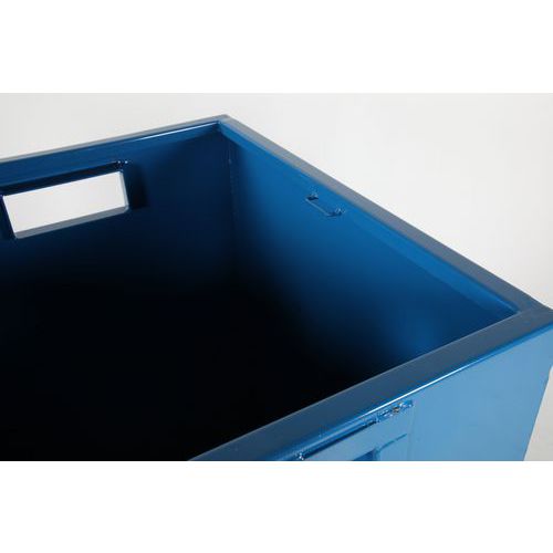 - Pohjasta tyhjennettävä säiliö, jonka koko pohja avautuu ja sisällön tyhjentäminen sujuu helposti ja kätevästi.
