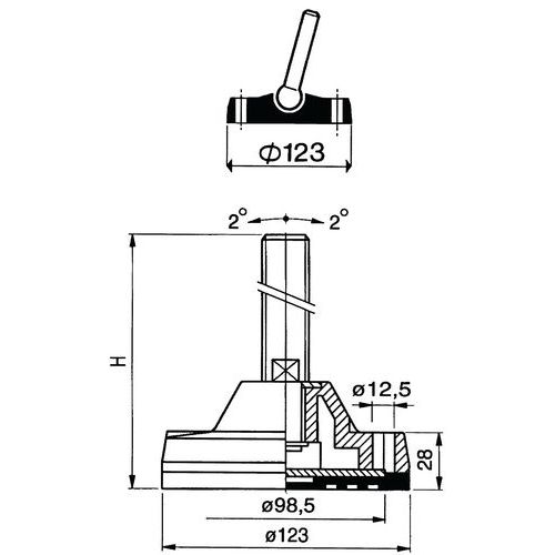 | Tavaranimike | Polyamidinen säädettävä jalka – Ø 123 mm – 4 500 kg – Sinkitty teräs, Tangon materiaali: Teräs, Varsi |