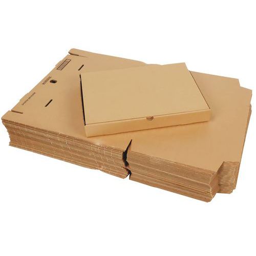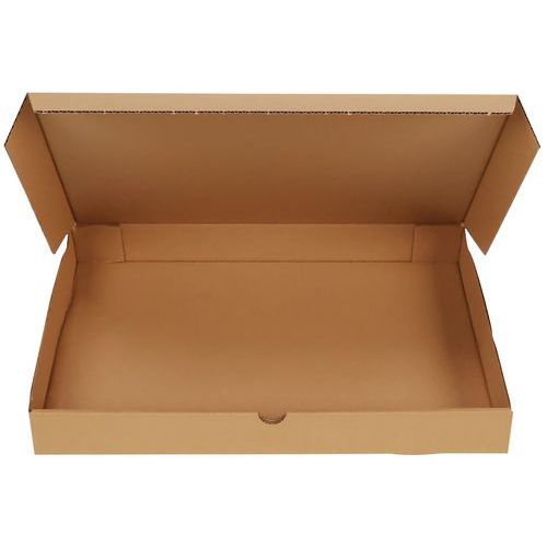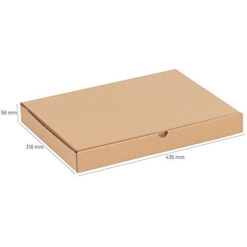 Vahva postituslaatikko, joka on valmistettu ruskeasta voimapahvista. Suunnittelu erityisesti litteille esineille.