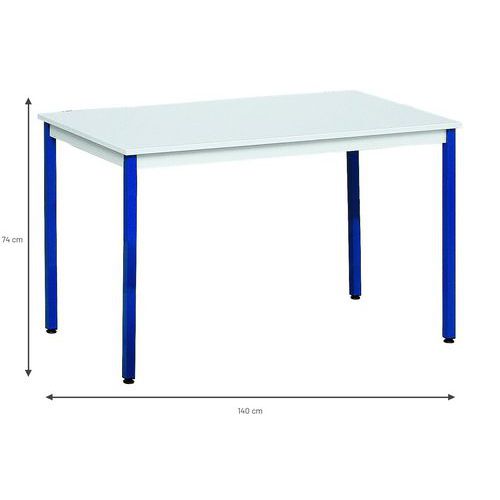 Pöytä ruokasaleihin ja kokoustiloihin. Valmistettu kestävästä laminaatista. Maalattu teräsrunko ja säädettävät jalat. Saatavana värivaihtoehdoilla harmaa levy/harmaa runko ja pyökkilevy/musta runko. Asennus : Kokoaminen Kestävän kehityksen standardit - Senter Novem : oui Takuu (vuosia) : 10 vuotta