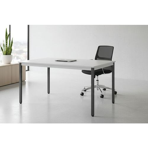 Pöytä ruokasaleihin ja kokoustiloihin. Valmistettu kestävästä laminaatista. Maalattu teräsrunko ja säädettävät jalat. Saatavana värivaihtoehdoilla harmaa levy/harmaa runko ja pyökkilevy/musta runko.