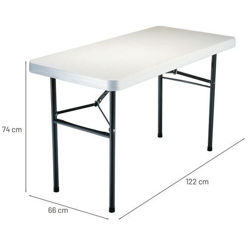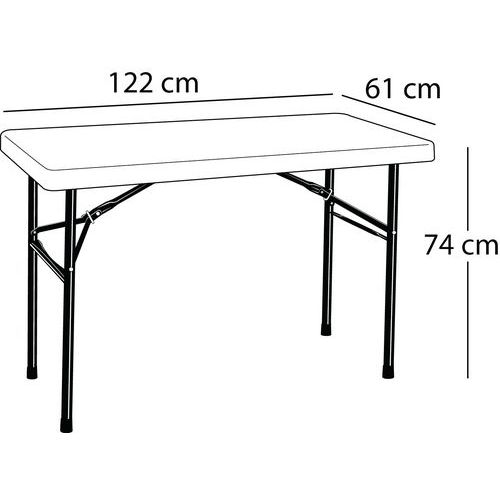 | Tavaranimike | Pöytä kokoontaitettava suorakaide, Pohjatyyppi: 4 jalkaa, Korkeus: 74 cm, Leveys: 122 cm, Muoto: Suorakulmio |