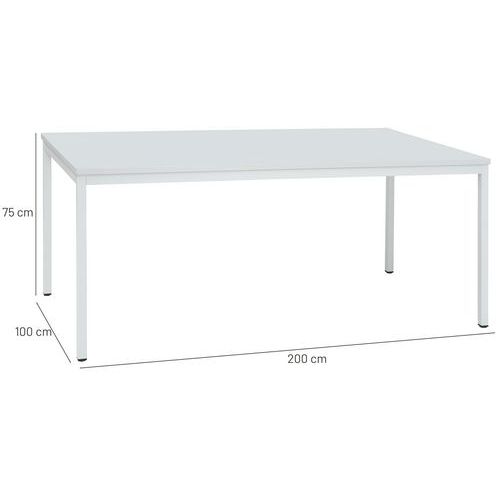 | Tavaranimike | Pöytä 100 x 200 cm, Pituus: 200 cm, Syvyys: 100 cm, Levy, materiaali: Melamiini, Jalat, väri: Vaaleanharmaa |