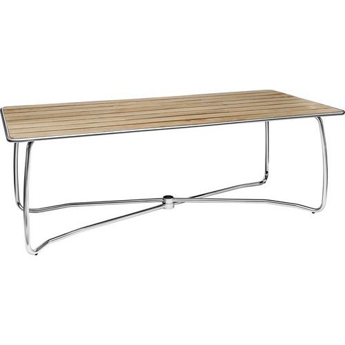 | Tavaranimike | Pöytä Spring 110x220 cm massiivista teräslankaa ja tiikkiä, Kokonaispituus: 220 cm, Muoto: Suorakulmio, Levy |