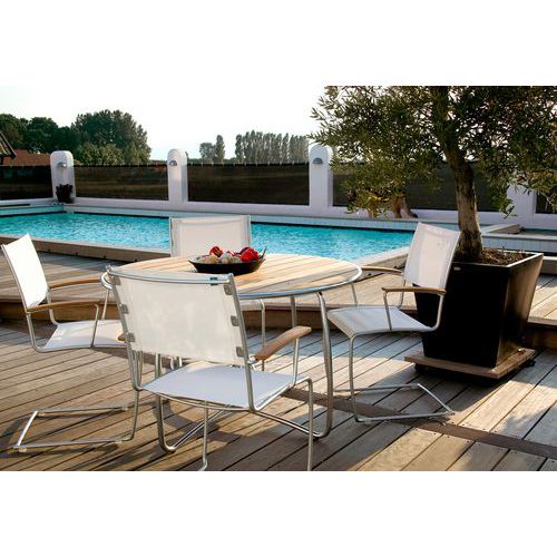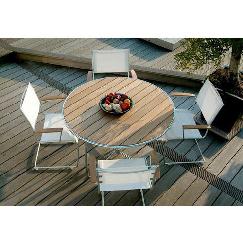 | Tavaranimike | Pöytä Spring Ø 120 cm massiivista teräslankaa ja tiikkiä, Kokonaispituus: 120 cm, Muoto: Pyöreä, Levy |
