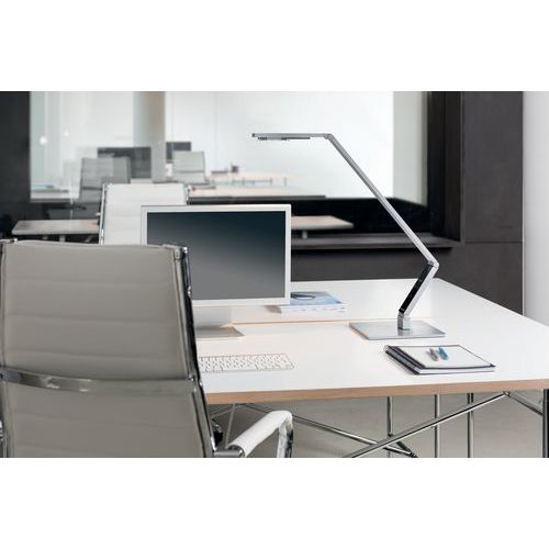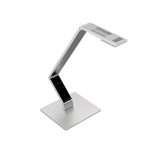 LUCTRA TABLE on huippulaadukas pöytävalaisin, joka tarjoaa erinomaiset mahdollisuudet valaistuksen säätämiseen käyttäjän tarpeiden mukaan. Päivänvalon puuttuminen ja heikkolaatuinen valaistus voivat aiheuttaa esimerkiksi väsymystä, innottomuutta ja huonoa näköergonomiaa. Ihmisten tarpeet ovat ainutlaatuisia ja siksi on tärkeää, että valaistuksen voi säätää yksilölliseksi sekä aktiivisen ajan että levon aikana. Oikea valaistus tukee keskittynyttä ja tehokasta työskentelyä. LUCTRA TABLE on pöytämalli, jossa on pohjalevy, kosketusnäyttö tummaa akryylilasia, huippuluokan LED-tekniikka ja laadukkaat itselukittuvat saranat. Lampun kirkkautta ja värilämpötilaa voi säätää terveyden ja hyvinvoinnin tukemiseksi. Pöytäjalusta . Ohjaus: VITACORE-kosketusnäyttö. Värilämpötila: 3 vaihtoehtoa: 2700/3600/6500 K. Valonvoimakkuus: 5 vaihtoehtoa - maks. 1000 luksia 60 cm korkeudella. Valaisimen valovirta: neutraali valkoinen 680 lm. Värintoistoindeksi (CRI): 80. Korkeus: 300 – 750 mm. Käyttöikä LED: enemmän kuin 50 000 tuntia. Energialuokka: A++