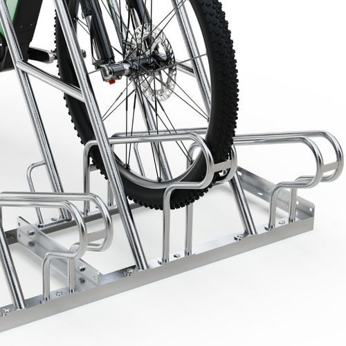 - Yksipuolinen pyöräteline turvalliseen ja mukavaan pysäköintiin.