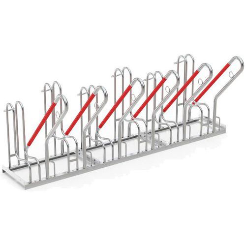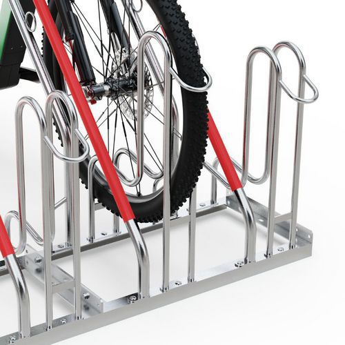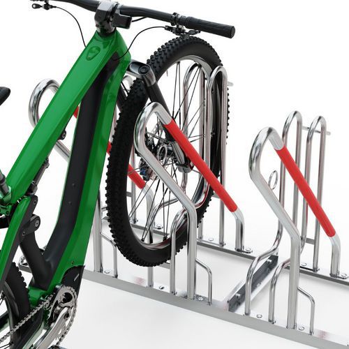 - Yksipuolinen pyöräteline turvalliseen ja mukavaan pysäköintiin.