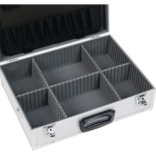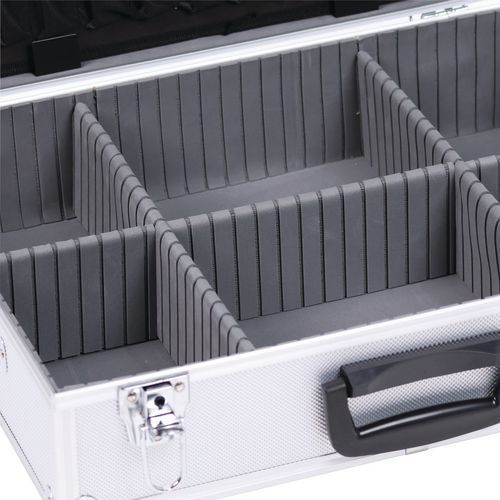 Erinomainen säilytysratkaisu, joka pitää työkalut järjestyksessä. Lokeroidut sisäosat työkalujen lajittelua varten. Kova PVC-kotelo. Kiinnitysjärjestelmä pitää työkalut paikoillaan kuljetuksen aikana. Ergonominen, miellyttävä kahva. Taitettava kiinnityssalpa. Kuorman kantavuus jopa 20 kg. 10 vuoden takuu.