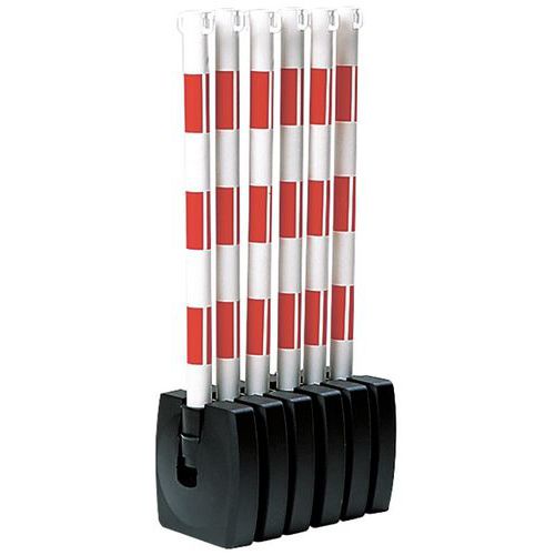 - Rajauspylväs 1,5 mm:n PVC:tä kokoontaittuvalla jalalla. Jalka voidaan lukita avattuna ja nostettuna. Avattuna pylväs seisoo ilman tukea. Myydään kappaleittain.