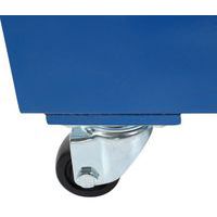 Metallinen kuljetuslaatikkosarja painavien kuormien käsittelyyn. Pyörissä ja kääntöalustoissa on luistamaton kumipinnoite. Kulutusta kestävät nailonpyörät. Lukittava pyörällinen laatikko helppoa kuljetusta varten