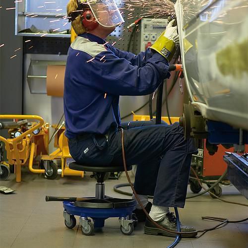 Yhtä käyttökelpoinen korjaustöissä ja hitsaus-/hiontatöissä kuin päiväkodissa, missä täytyy istua matalalla tasolla lasten kanssa.
