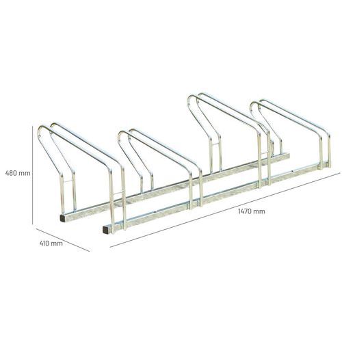 Pyöräteline vierekkäin, 4-6-8 pyörälle, Kokonaispituus: 1470 mm, Paikkojen lkm: 4, Malli: Perusmalli Pyöräteline vierekkäin, 4-6-8 pyörälle, Kokonaispituus: 1470 mm, Paikkojen lkm: 4, Malli: Perusmalli