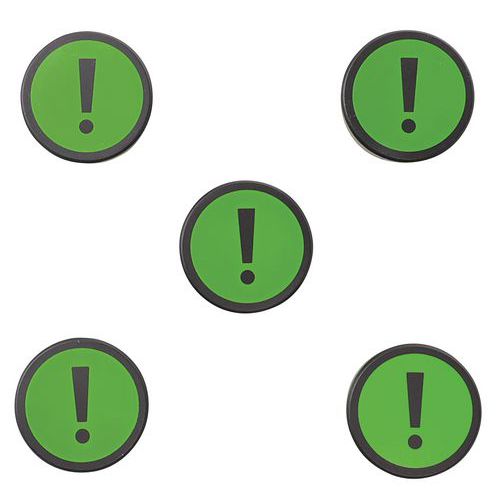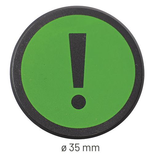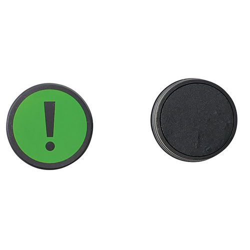 Pyöreä magneetti, jossa huutomerkki symboli, Tyyppi: Huutomerkki, Väri: Vihreä, Halkaisija: 35 mm