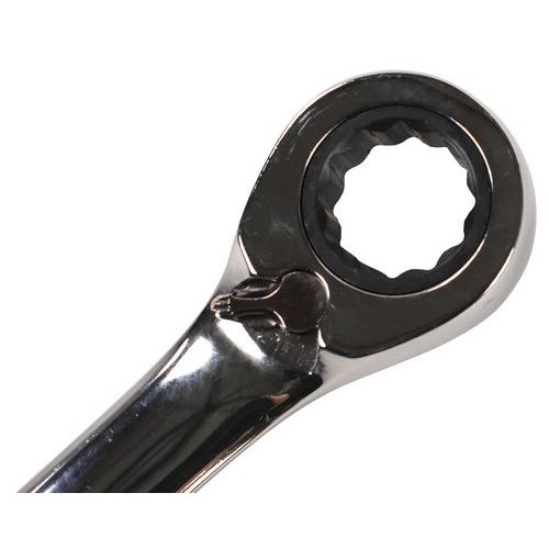 Räikkä-kiintoavain millimetreinä. 72 hampaan mekanismi, 5 asteen korjauskulma. Kiiltävä viimeistely. Pienikokoinen ja kestävä käännettävä räikkämekanismi.